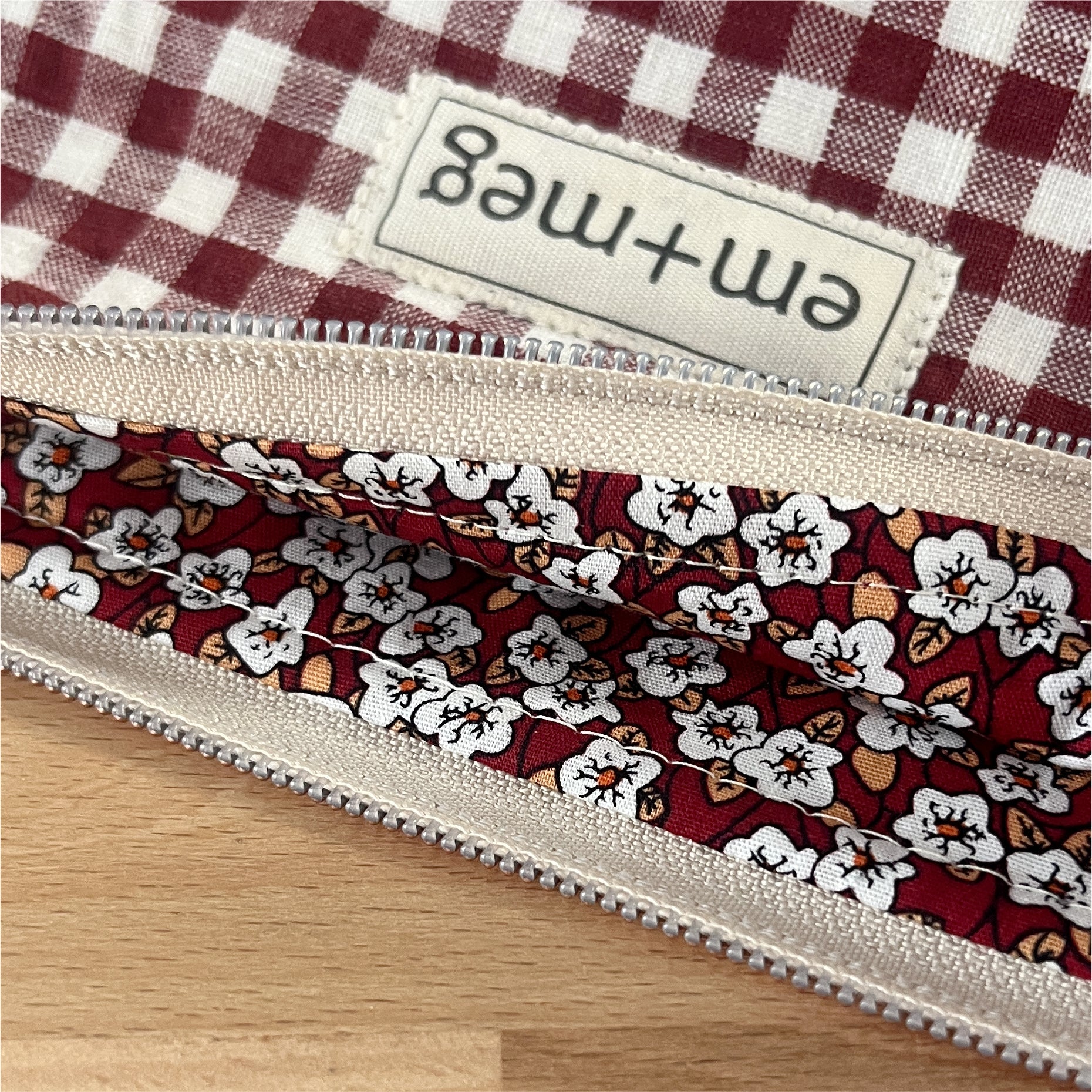 This spacious pouch combines a trendy maroon gingham pattern with a versatile design that suits any occasion. Stay organised in style or make a fashion statement – this pouch is your go-to accessory for all your needs.