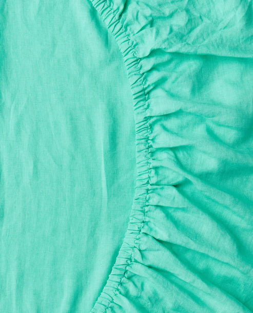 The Opal Linen Fitted Sheet is a cool opal green blue plain linen.