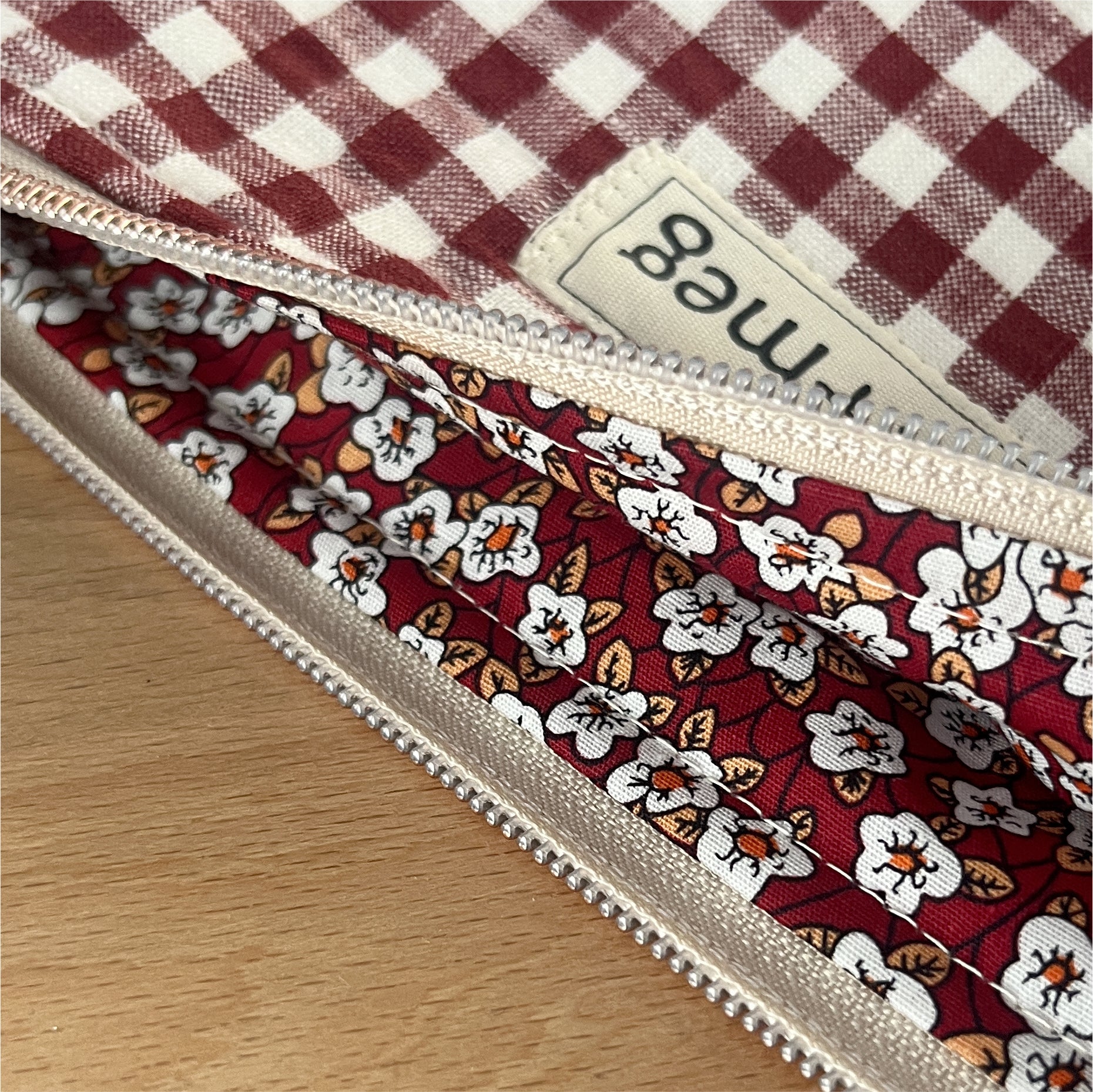 Elevate your style with our Small Maroon Gingham Pouch. This versatile accessory combines a stylish design with the classic charm of gingham material.